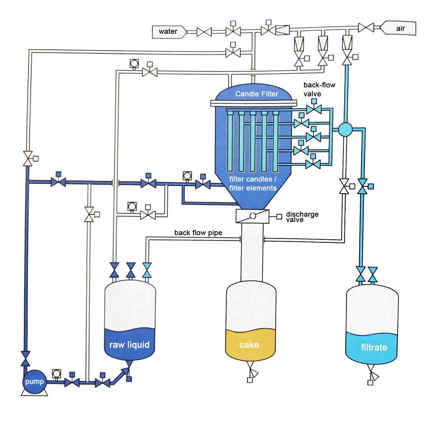 a. The candle filters from Zonel FIltech with a big flow volume, can filter directly, or be coated first with cake filtration to improve the filter efficiency, widely used for cake recycling, and liquid concentrating applications, and the cake can be washed before recycling them, with a much higher purity.